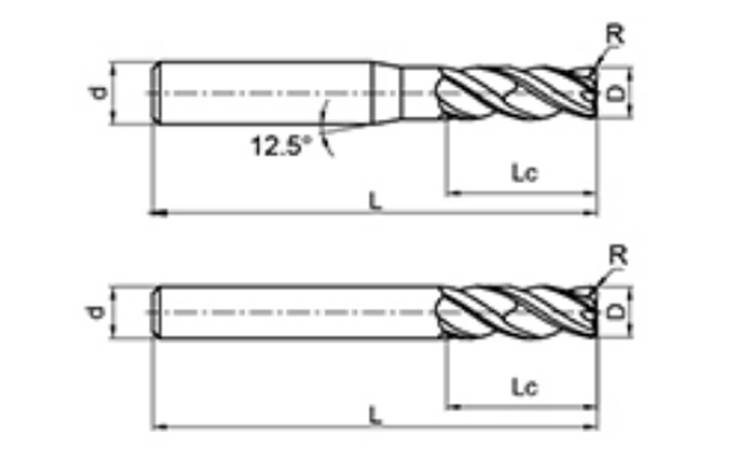 | Hindi. | diameter D | R Anggulo R | Haba ng plauta Lc | Pangkalahatang Haba L | Shank Dia d | Bilang ng Blade F |