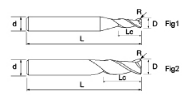| Hindi. | diameter D | R Anggulo R | Haba ng plauta Lc | Pangkalahatang Haba L | Shank Dia d | Bilang ng Blade F |