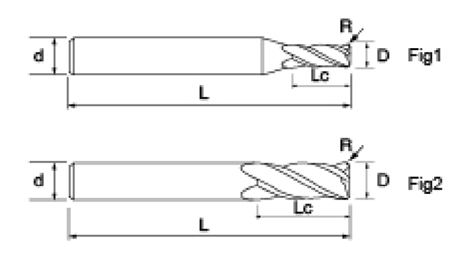 | Hindi. | diameter D | R Anggulo R | Haba ng plauta Lc | Pangkalahatang Haba L | Shank Dia d | Bilang ng Blade F |