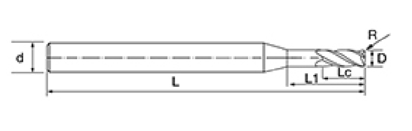 | Hindi. | diameter D | R Anggulo R | Haba ng plauta Lc | Epektibong Haba L1 | Pangkalahatang Haba L | Shank Dia d | Bilang ng Blade F |