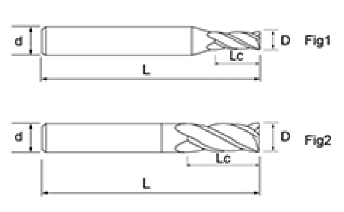 | Hindi. | diameter D | Haba ng plauta Lc | Pangkalahatang Haba L | Shank Dia d | Bilang ng Blade F |