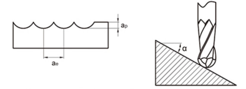 | Radius ng Ball Head (mm) | Bilis ng Pag-ikot (min -1 ) | Bilis ng Feed (mm/min) | a p (mm) | a e (mm) | Bilis ng Pag-ikot (min -1 ) | Bilis ng Feed (mm/min) | a p (mm) | a e (mm) | Bilis ng Pag-ikot (min -1 ) | Bilis ng Feed (mm/min) | a p (mm) | a e (mm) |