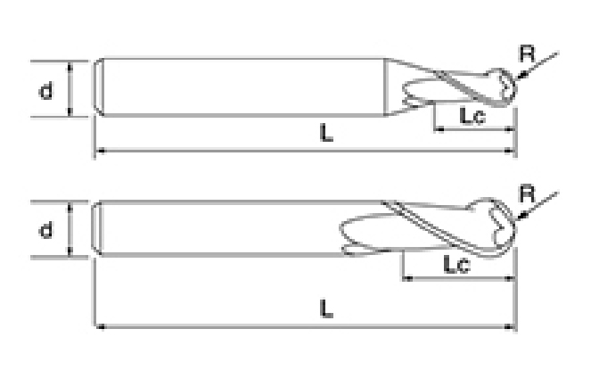 | Hindi. | diameter D | R Anggulo R | Haba ng plauta Lc | Pangkalahatang Haba L | Shank Dia d | Bilang ng Blade F |