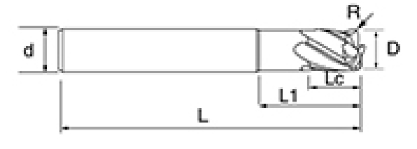| Hindi. | diameter D | R Anggulo R | Haba ng plauta Lc | Epektibong Haba L1 | Pangkalahatang Haba L | Shank Dia d | Bilang ng Blade F |