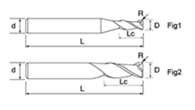 | Hindi. | diameter D | R Anggulo R | Haba ng plauta Lc | Pangkalahatang Haba L | Shank Dia d | Bilang ng Blade F |