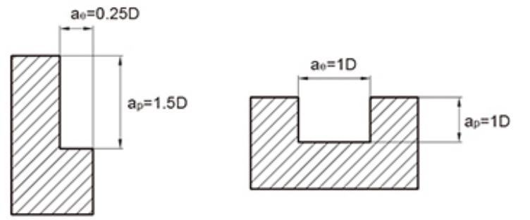 1. Ang talahanayan sa itaas ay batay sa mga benchmark na halaga para sa side milling. Ang mga kondisyon ng pagputol para sa paggiling ng slot ay batay sa 70% ng bilis ng pagputol at 50% ng rate ng feed sa talahanayan sa itaas.