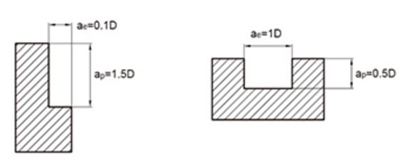 1. Ang talahanayan sa itaas ay batay sa mga benchmark na halaga para sa side milling. Ang mga kondisyon ng pagputol para sa paggiling ng slot ay batay sa 70% ng rate ng feed sa talahanayan sa itaas.