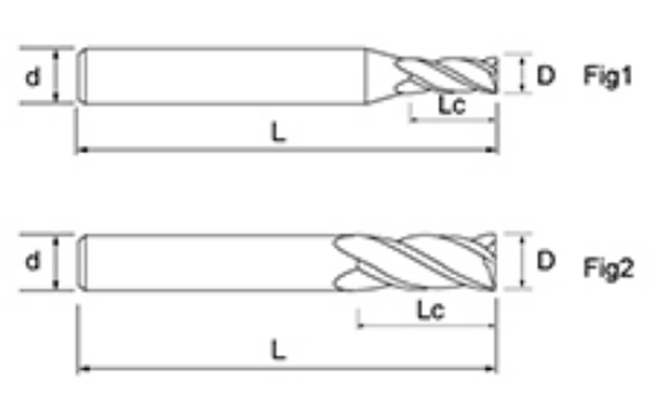 | Hindi. | diameter D | Haba ng plauta Lc | Pangkalahatang Haba L | Shank Dia d | Bilang ng Blade F |