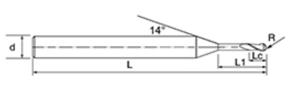 | Hindi. | diameter D | R Anggulo R | Haba ng plauta Lc | Epektibong Haba L1 | Pangkalahatang Haba L | Shank Dia d | Bilang ng Blade F |
