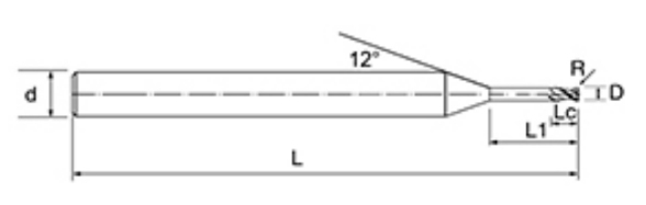| Hindi. | diameter D | R Anggulo R | Haba ng plauta Lc | Epektibong Haba L1 | Pangkalahatang Haba L | Shank Dia d | Bilang ng Blade F |
