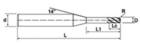 | NNX Carbide End Mills para sa Copper Electrode | D0.1~D0.9 | 0 -0.005 | R0.05~R2 | /-0.005 | CR0.05~CR0.5 | /-0.005 | 0 0.3 | 0 0.3 | 0.5 -0.5 | h5 |