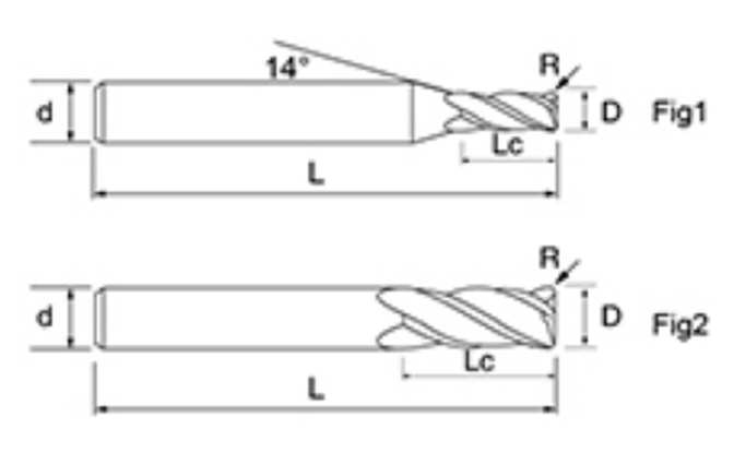 | Hindi. | diameter D | R Anggulo R | Haba ng plauta Lc | Pangkalahatang Haba L | Shank Dia d | Bilang ng Blade F |