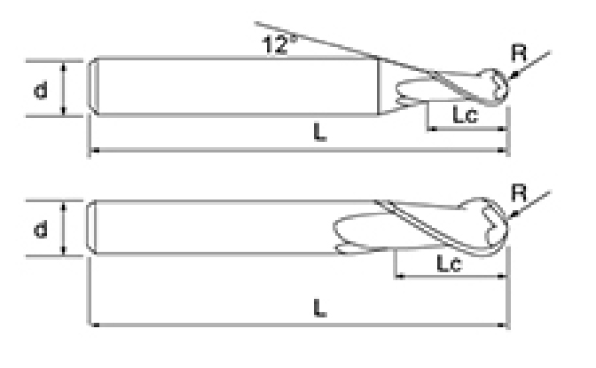 | Hindi. | diameter D | R Anggulo R | Haba ng plauta Lc | Pangkalahatang Haba L | Shank Dia d | Bilang ng Blade F |