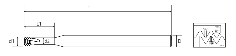 | Pitch | Magaspang na Ngipin UNC | Mabuting Ngipin UNF | Diameter ng Blade d1 | Diameter ng Pag-iwas d2 | Mabisang Haba ng Blade L1 | Diameter ng hawakan D | Pangkalahatang Haba L | Bilang ng Blade | Diameter ng Bottom sa Ibaba |