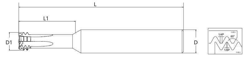 Ginawa gamit ang isang high-strength substrate at pinahiran para sa pinahusay na wear resistance, ang tool ay na-optimize para sa machining steel hanggang sa 48HRC. Available ito sa iba't ibang laki ng thread mula M3 hanggang M12, na may tumpak na kinokontrol na mga diameter ng clearance at epektibong haba ng pagputol upang mapaunlakan ang iba't ibang lalim at mga detalye ng threading. Tinitiyak ng disenyo ng shank ang matatag na pag-clamping at malawak na pagkakatugma sa mga CNC machine at mga kapaligiran sa machining.